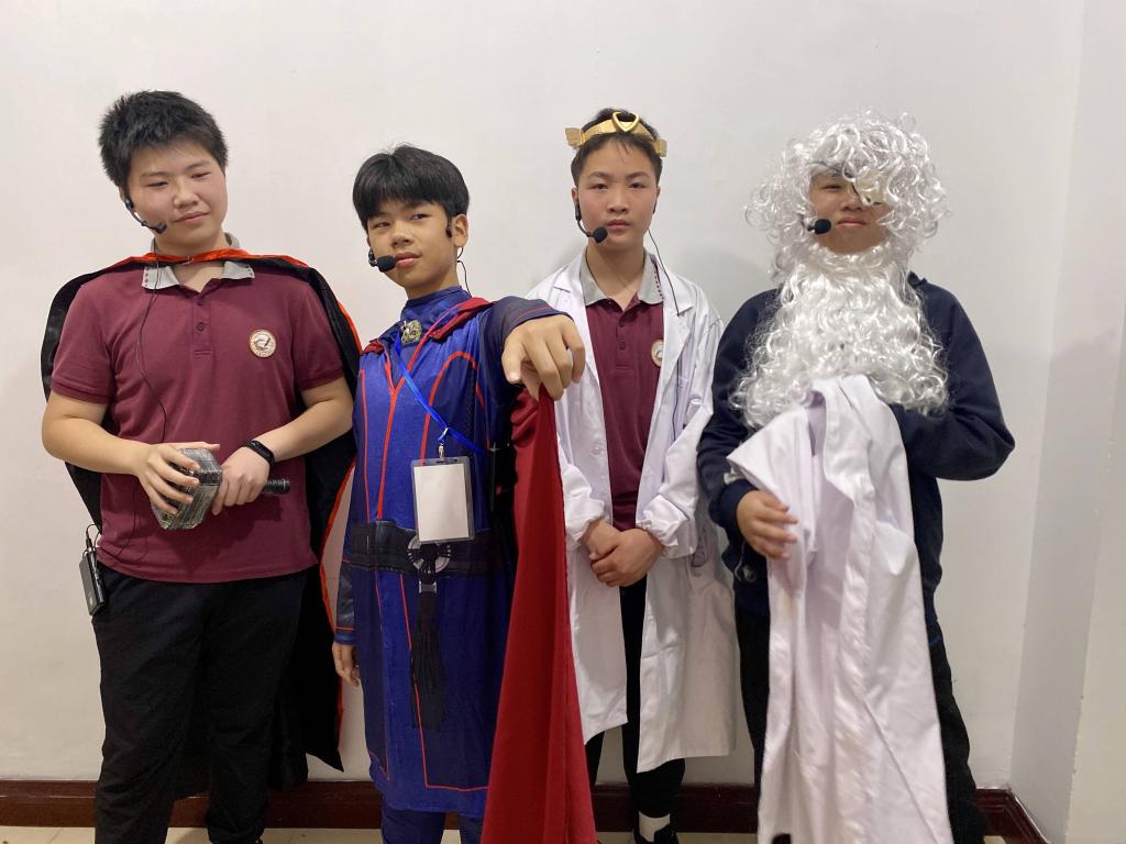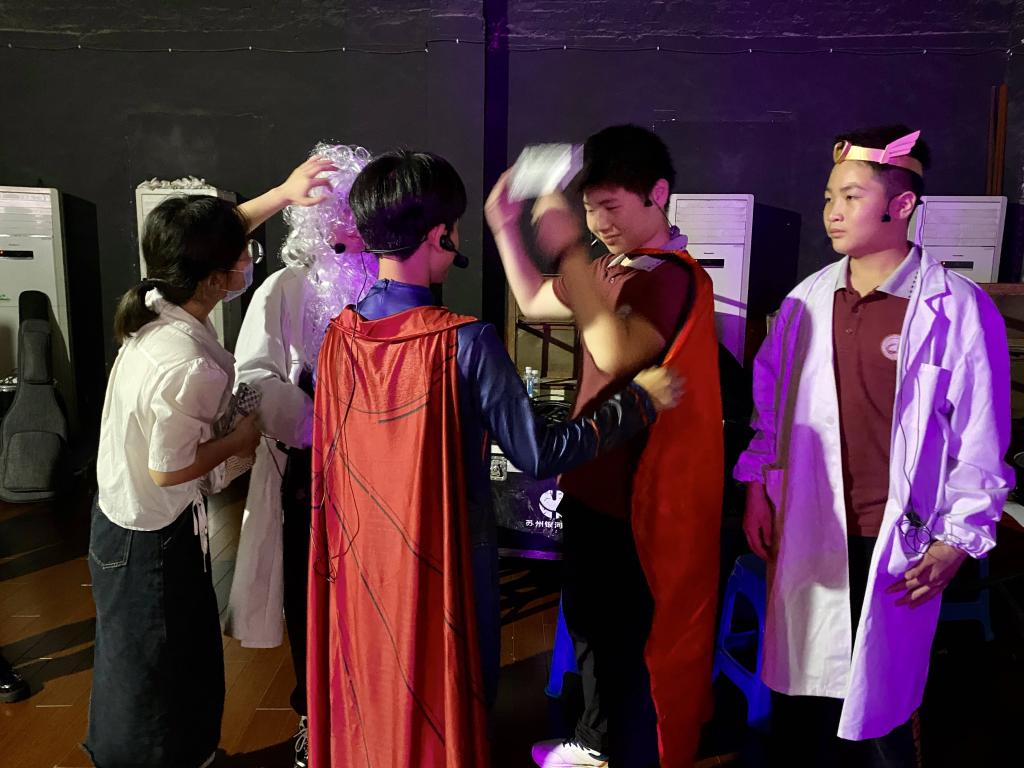 学生志愿者张思佳,姜甜媛和钱园老师共同执导。舞台上,四位同学身着剧服,化作奇幻人物,在聚光灯下演绎剧中跌宕起伏的冒险经历,以丰富的言表现力和幽默风趣的肢体动作赢得观众的阵阵掌声,向苏科大的大哥哥大姐姐们展现了来自彩中少年的风采。