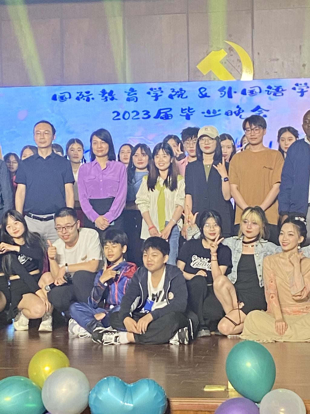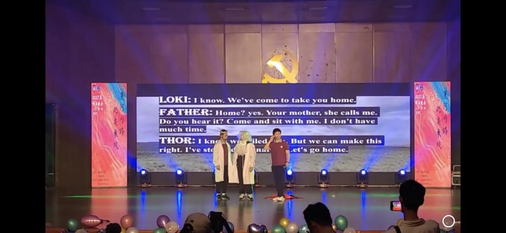 &国际教育学院2023年毕业晚会于苏州科技大学石湖校区音乐厅盛大开场。本次毕业晚会特邀来自苏州市彩香实验中学校的初二学生嘉宾李犇、刘涛、马仕霖、何浩然,为观众送上精彩的英语短剧表演《雷神3:诸神黄昏》。
