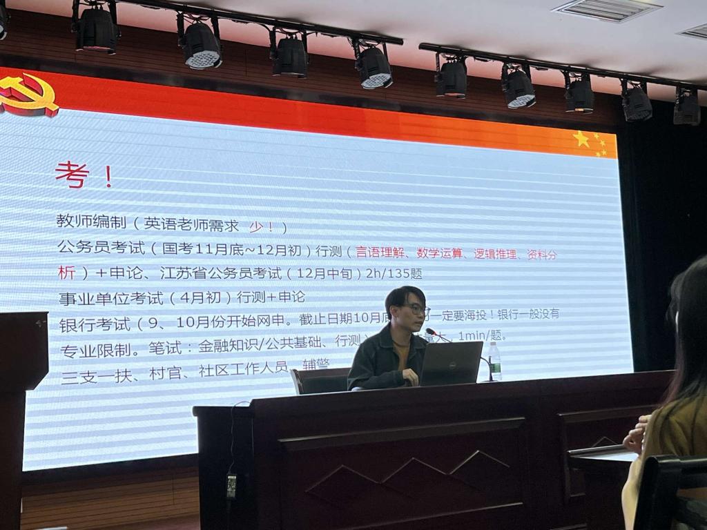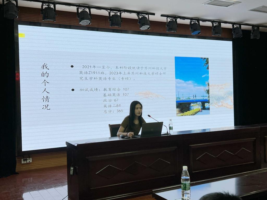 会议中,夏云康老师特邀请英语Z1911的郭彤彤同学向大家分享自己的考研经验,并为大家提出宝贵的意见。旨在为考研的同学提供信息,提高学习效率。之后,夏云康老师为大家分析了目前的就业形势,希望有就业意向的同学在完成自己的学习任务之后,抓住招聘资源,积极开展暑期实习,提高自身工作经验。此外,还向同学们讲述、分析了考编的各项事宜,让同学们对考编也有了基本的了解,从而有更多的人生选择。