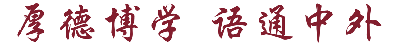 “厚德”指人的胸怀宽广,气度宏大,具有良好的道德修养。引“厚德”二字,意在期望师生以高尚的道德立身。“博学”意为学识渊博,见多识广,是对师生知识和技能方面的要求,意在期望师生勤奋治学,厚养学识。“厚德博学”是落实立德树人根本任务的具体要求,也是学院的立身之本。“语通中外”指在学习、教学、学术等方面要具备跨文化视野和通才意识。一方面体现了学院的办学性质与特色,另一方面也蕴含着对全体师生的期望:在全球化背景下务必立足本土、面向世界。