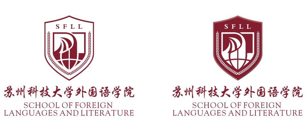 在外形上,整体标识采用双盾形设计,中心一层寓意学院对学生梦想的守护;外面一层体现了国家为教育之路护航。结构上,标识主体为书卷与地球融合图形,既有“读万卷书、行万里路”的深刻内涵,也有立足中国、走向世界的远大志向和博大胸怀。两侧为饱满的麦穗造型,象征着育人的希望和成才的收获。在色彩上,整体标识以沉稳的紫色为主旋律,尽显大学生的热血稳进、教师的稳重敬业、学院的行稳致远。在立意上,整体标识是对院训“厚德博学、语通中外”的延伸解读。