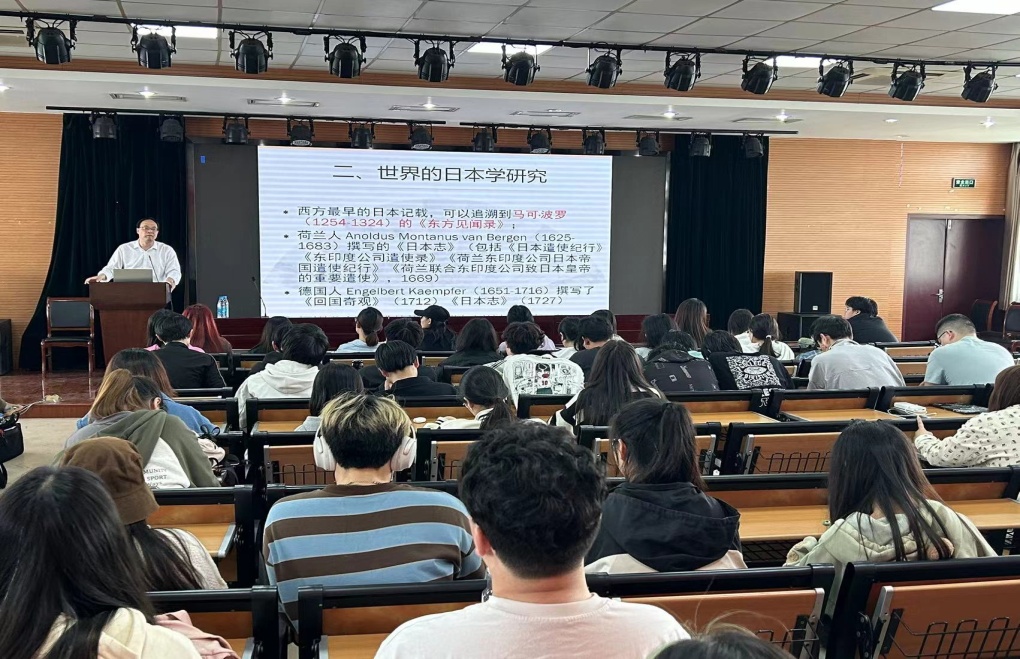 在面向学生的讲座中,吴教授首先从世界体系视域下的东方研究导入,从历史背景出发,分析了不可避免的东亚问题。结合文学作品的例文,从历史、区域与观念的角度出发,探索世界的日本学研究,分析不同学者视角下“神秘的日本”,并通过日本来反观中国。最后指出中国处于百年未有之大变局,从而需要新理念的支撑,强调区域国别研究的重要性。