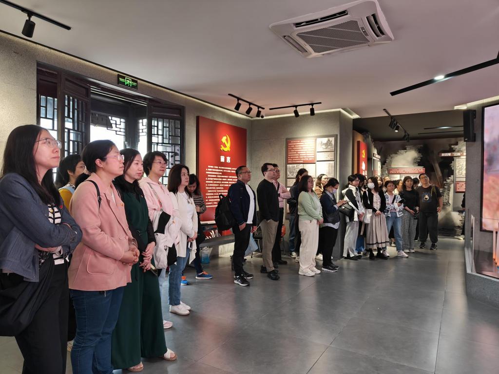 上午,老师们前往苏州新四军太湖游击队纪念馆,参观了新四军太湖抗日游击支队初建、重建、扩建时期的曲折历程。馆内陈列了新四军战士用过的各种生活用品和作战工具、信件等陈列品,虽然破旧简单,但是看着依旧英气凌人,似乎带进了那个战火纷飞的年代,生动再现了游击队战士艰苦卓绝的抗日斗争情景。