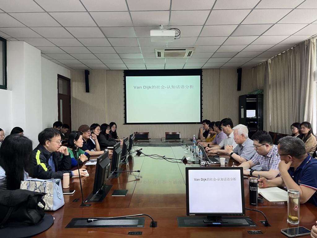 辛斌教授作《Van Dijk的社会——认知话语分析》专题讲座,从批评话语分析与认知语言学的融合、Van Dijk的社会认知视角等方面出发,对Van Dijk认知话语观的渊源进行考究,并结合实例深入解读了该学者所提出的三层次“认知——话语”分析模式。王永祥教授作《艺术符号的多重能指》专题讲座。他摘引德国著名哲学家恩格斯·卡西尔及其弟子苏珊·朗格提出的“艺术是情感的符号”这一著名观点,结合自身实际经历,阐述了艺术符号的叙事功能、话语功能和情感功能这三重能指。