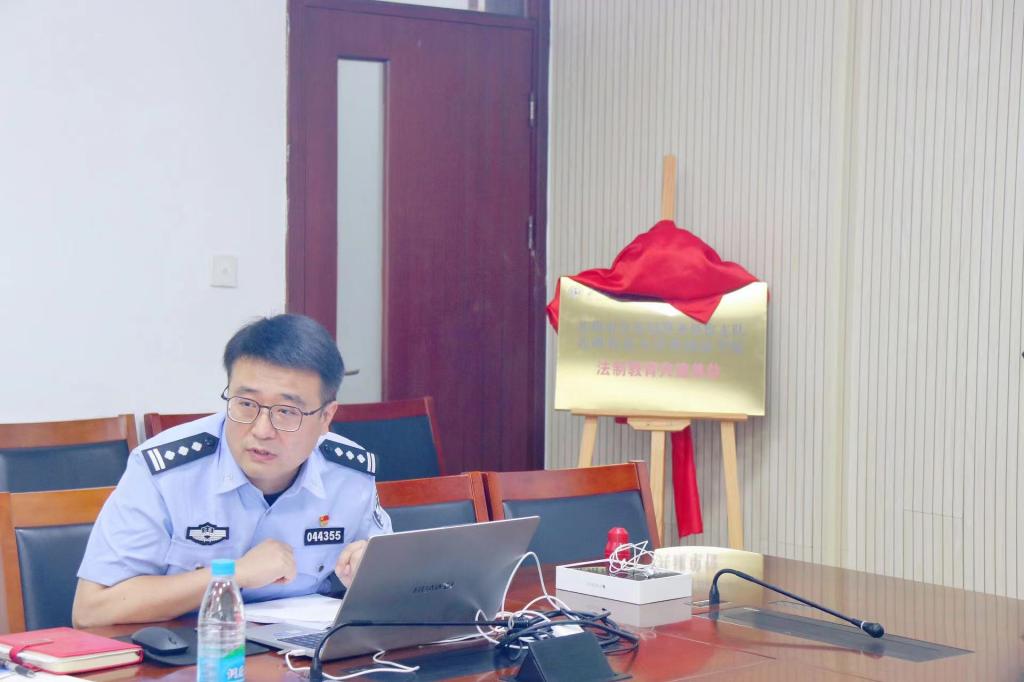 共建仪式结束,陈凯从公安工作基本情况、法治教育的意义、禁毒宣传和反诈宣传四方面,为学生上了法治教育第一课。