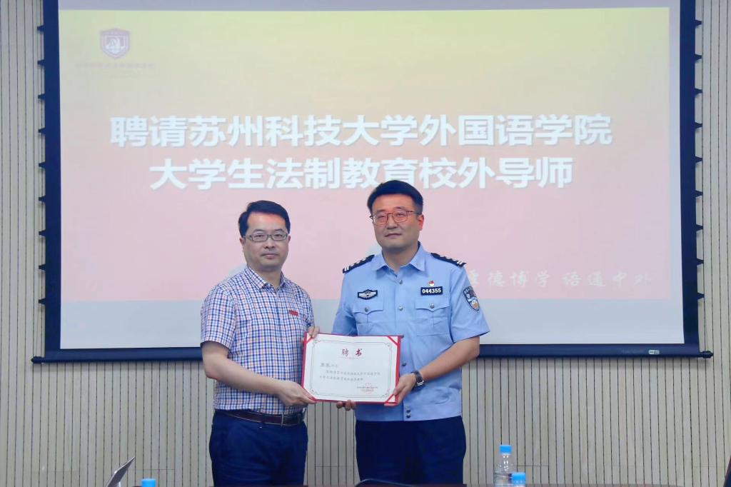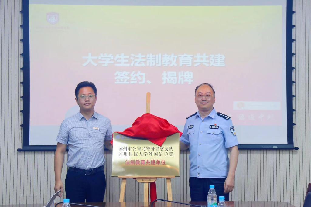 共同举行法治教育共建仪式。市公安局警务督察支队政委宋征宇、副支队长陈凯、大队长王士益、苏玲、民警王馨娴,苏州科技大学党委常委、宣传部部长朱明珠,雷速体育