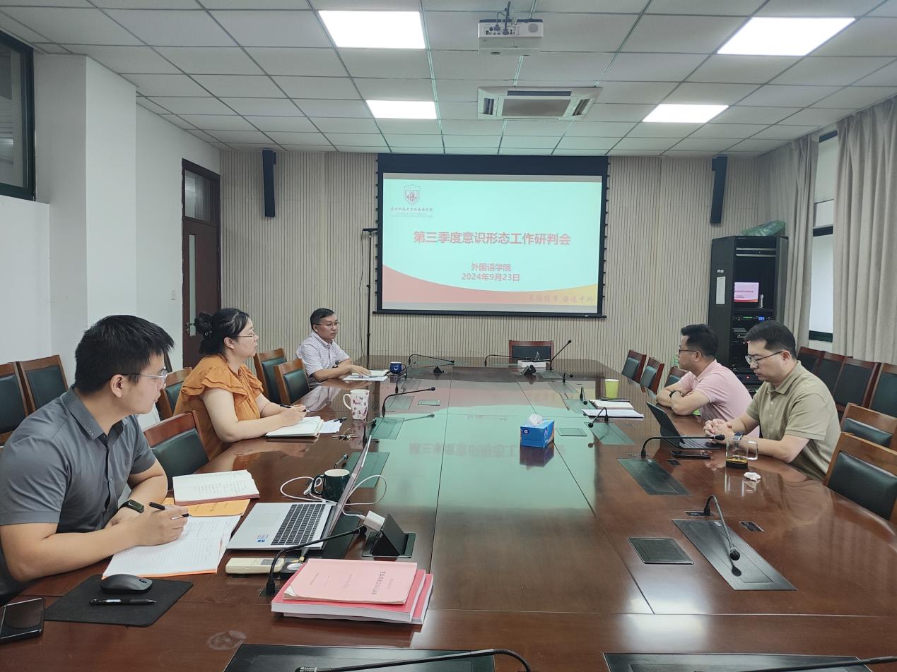 召开第三季度意识形态工作研判会,会议由党委书记姚之彦主持,学院领导班子成员参加。