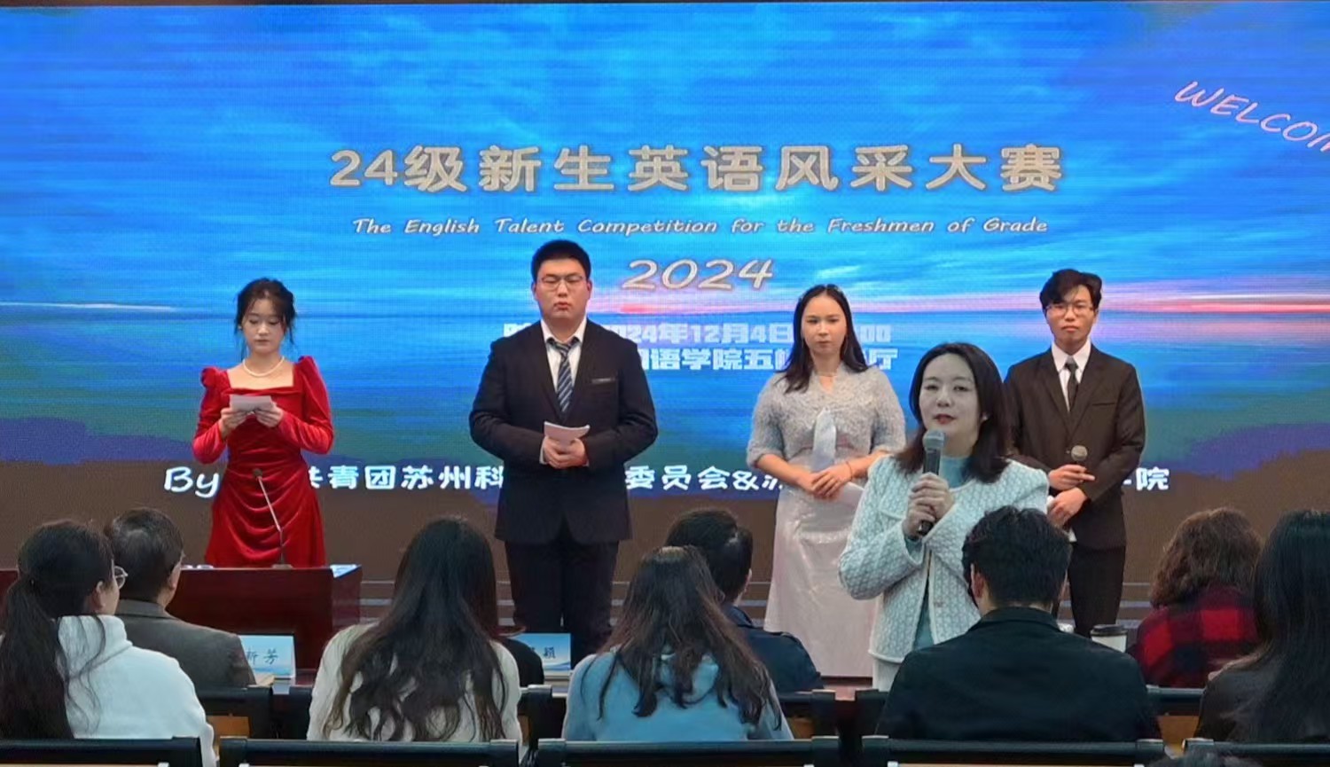 本次大赛旨在提升新生的英语应用能力,激发学生英语学习热情,丰富校园文化生活,并为新生提供一个展示自我的平台。大赛得到全校2024级同学的积极响应和参与,通过初赛的选拔,最终有26名选手(含团队)进入决赛。决赛中,选手们用流利的英语、自信的台风和精彩的表演,以英文歌曲、英语话剧、诗歌朗诵、电影配音等多种形式展现了出色的英语水平和青春风采。经过激烈角逐,大赛评选出了特等奖3名、一等奖、二等奖和优胜奖若干等奖项。获奖选手们用实力证明了自己,为梦想赢得了荣誉。