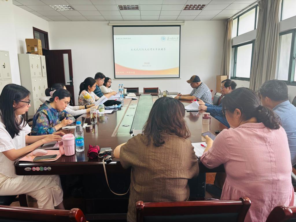 “问渠哪得清如许?为有源头活水来” ,生成式 AI 恰似一股活水,为英语专业各课程教学注入新活力,提供新思路。5月14日下午,英语系全体教师在C2-408举行了“生成式AI与大创项目申报辅导”的五月教研活动,活动由孔沛琳副主任主持。