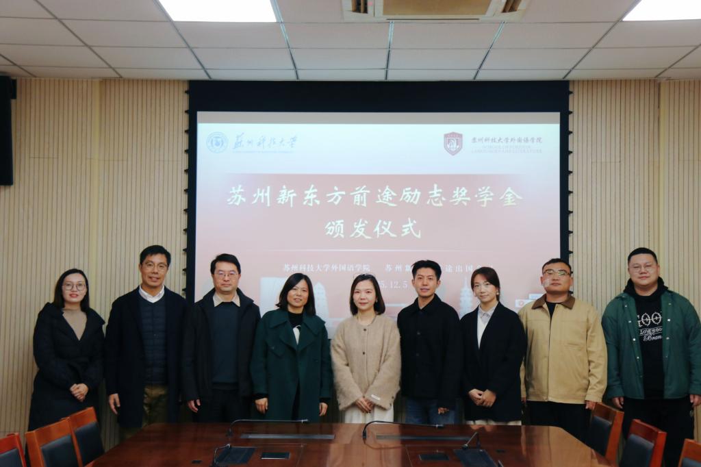 举行“苏州新东方前途励志奖学金”颁奖仪式。苏州新东方前途出国总经理傅羽、外语学院党政领导及获奖学生参加了活动。