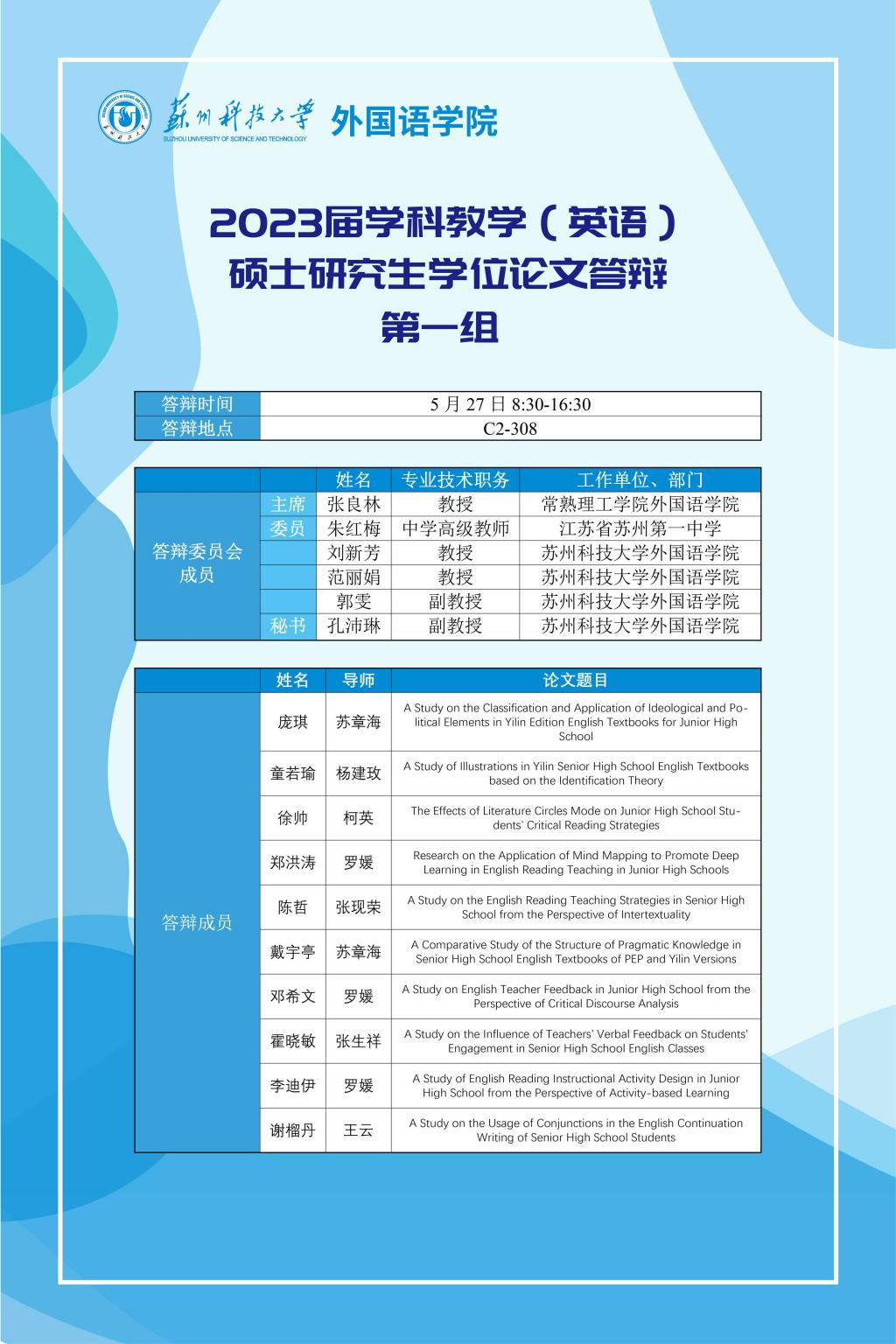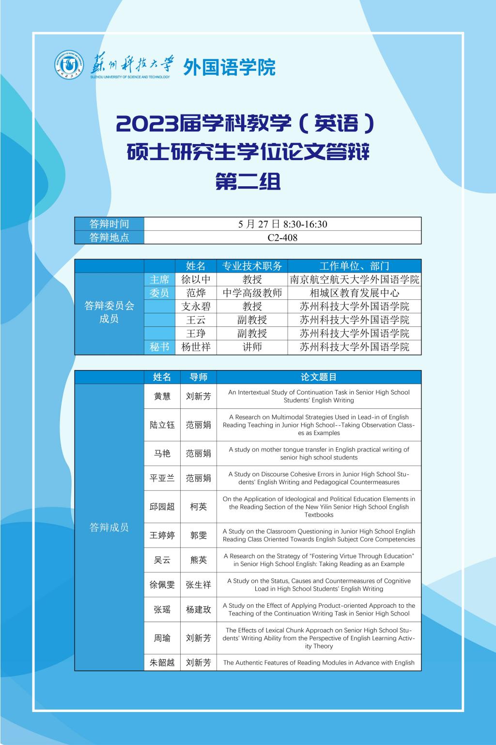 2023届学科教学(英语)硕士研究生学位论文答辩