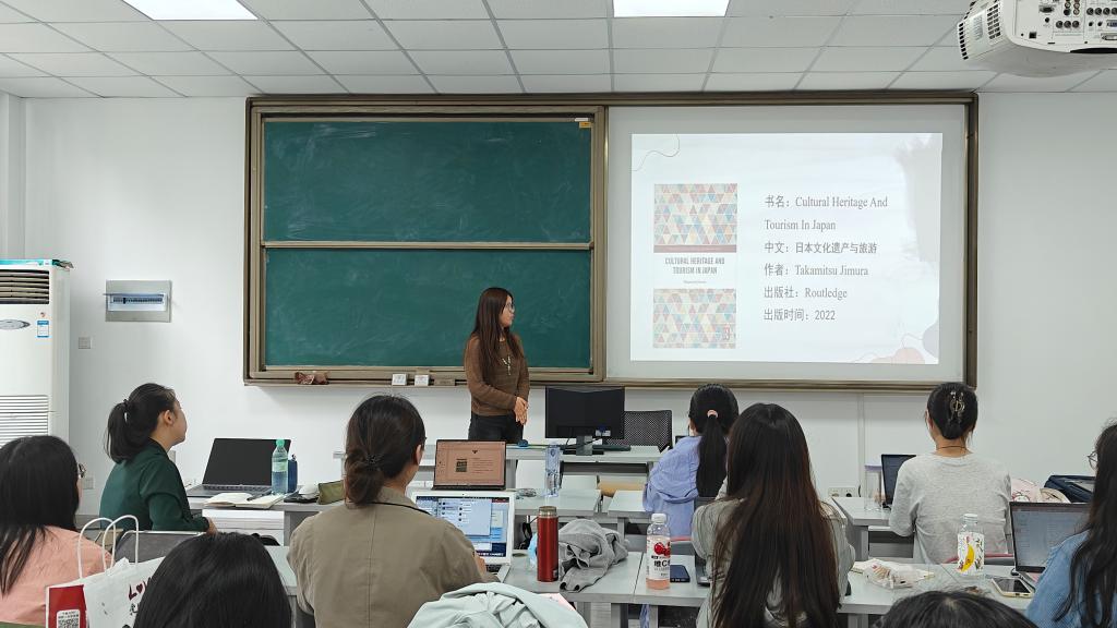 最后一位进行分享的是付铭婧同学。她翻译的书目是Cultural Heritage And Tourism In Japan,译为《日本文化遗产与旅游》。该书从多个维度介绍了日本的文化遗产和旅游目的地。付铭婧同学认为该书翻译的难点在于书中夹杂着许多日语罗马音,在翻译上较难处理。为此,她找到了相应的网站进行检索,解决了这一难题。她表示未来还将继续学习他人的经验,精进译本。