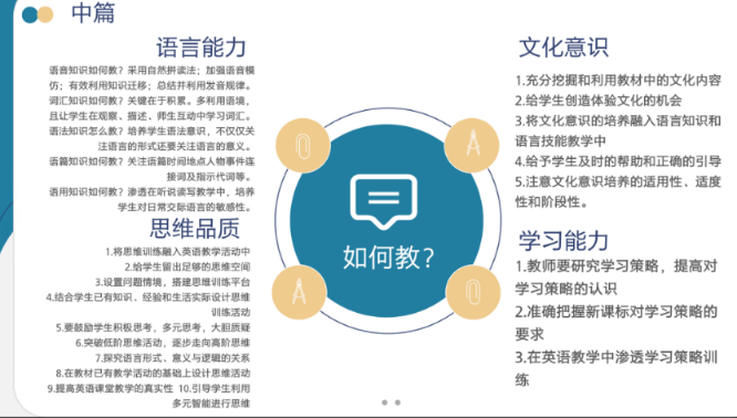 吴嘉丽分享的是《高中英语以写促学教学法》,详细地介绍本书的重点思想理论、以写促学教学法,并作出自己的理解与反思。吴思缘分享了《改什么?如何教?怎么考?---义务教育英语课程标准(2022年版)解析》,通过简要介绍本书的整体框架,详细介绍了本书的概要和言语两部分,并分享了自己对于以上部分的理解与感悟。熊玲燕分享的是《新编心理语言学读书汇报》。她从绪论、语言、第一语言习得、心理词汇、言语。语言和思维六个角度切入,发表了自己的观点与思考。徐欣芸分享了2020 The Routledge Handbook of Language Education Curriculum Design,她从概况和部分重要观点切入分享自己的心得。姚豆分享的书籍是《英语教学课堂话语分析》,从定义、基本特征、存在的问题、质量提升策略四个方面切入,对教师教学发展提出自己的想法与心得体会。周悦分享了《核心素养下的英语教学理念与实践》,从作者简介、内容梗概、聚焦章节、总结反思这几个方面向同学们呈现一个相对全面的行动研究面貌。