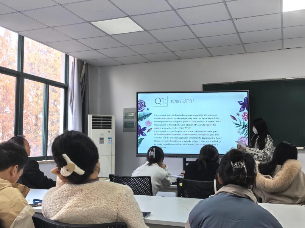 李清同学分享的书籍是How to Teach English,她对本书作者履历以及思想框架进行了简要阐述,详细地介绍本书的重点思想理论ESA并作出自己的理解与反思。陆斯圆同学分享的书籍是《认知心理学》,分享了自己对于概要和言语两部分的理解与感悟。逯登莎同学分享的书籍是《英语教学研究方法与案例评析》,她从概述、研究方法、成果交流和读书感悟四个角度切入,发表了自己的观点与思考。孙琳同学分享的书籍是《英语教学研究方法与案例分析》,她从个案研究感知与理解、设计与实施两个角度切入,从案例分析中分享自己的心得。王珂同学分享的书籍是《英语教学行动研究》,从行动研究的定义、原因、过程、要求角度切入,对教师教学发展提出自己的想法与心得体会。王璐同学分享的书籍是《英语教师行动研究》,从行动研究的定义、教师为什么要进行行动研究、行动研究的步骤、行动研究与传统教育研究的对比进行讲解。