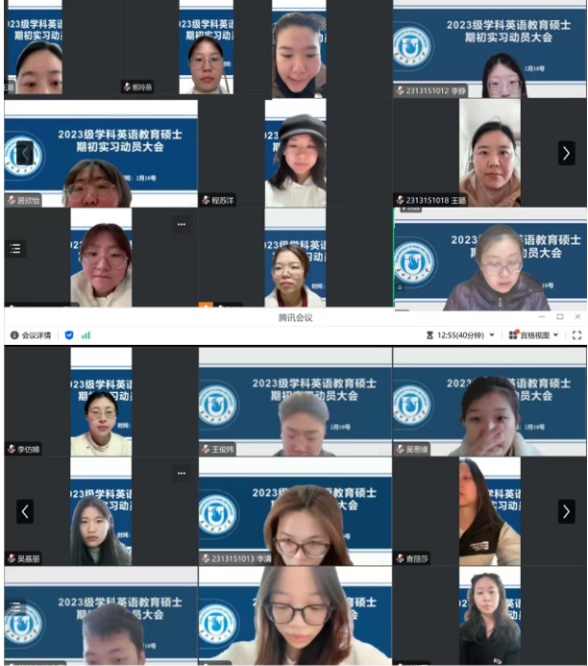于2月18日下午线上召开23级学科英语教育硕士期初实习动员会。院长助理郭雯老师、学科英语教学专业负责人范丽娟老师,以及24名同学全体参与。会议由郭雯老师主持。