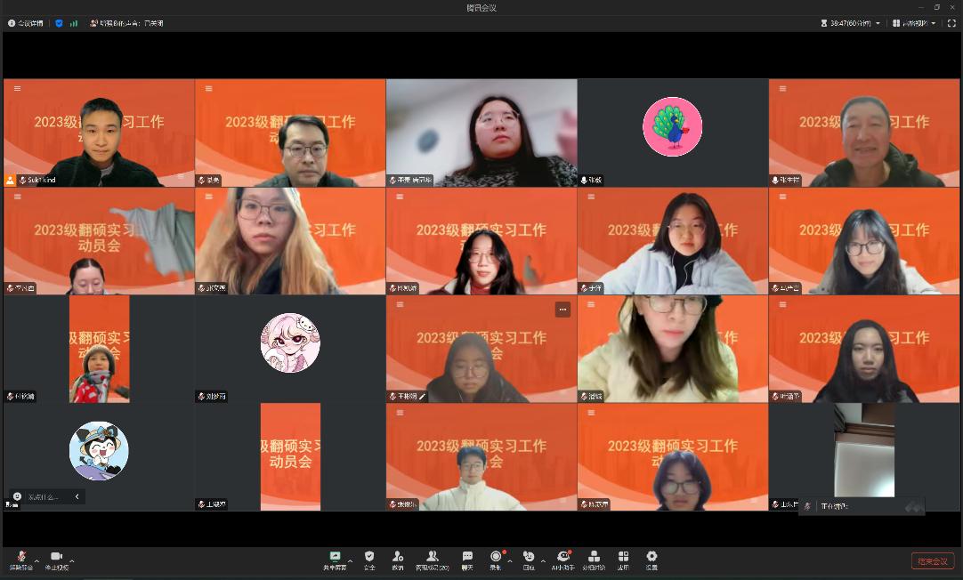 于12月23日晚线上召开2023级翻译专业研究生实践动员会。副院长(主持工作)綦亮、MTI教育中心主任张生祥、翻硕导师、2023级英语笔译全体研究生参加动员会议,会议由MTI教育中心主任张生祥主持。墨责(北京)科技传播有限公司项目经理张毅、唐冠华受邀出席。