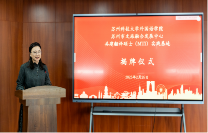 副院长(主持工作)綦亮、院长助理郭雯、MTI中心主任张生祥、苏州市文旅融合发展中心主任浦娴等出席揭牌仪式。