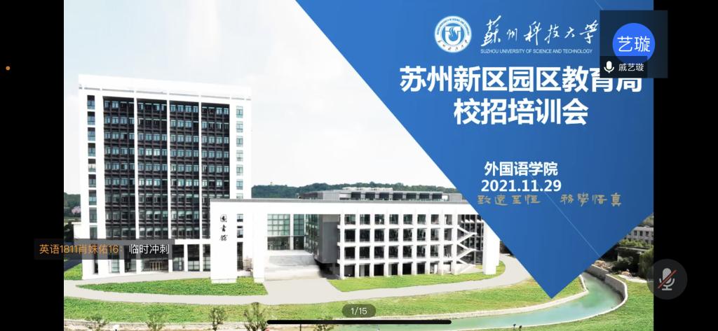 学生党支部急学生之所急、想学生之所想,强化提升2022届毕业生的求职技能,为即将到来的苏州新区园区教育局校园招聘做好充足准备。学院于2021年11月29日13∶00成功举办了线上苏州新区园区教育局校招培训会,邀请了四位范成林、王馨若、戚艺璇和李玲在新区和园区就职的英语老师分享了当年参加校招考试的经验,2022届毕业生参加了培训会。