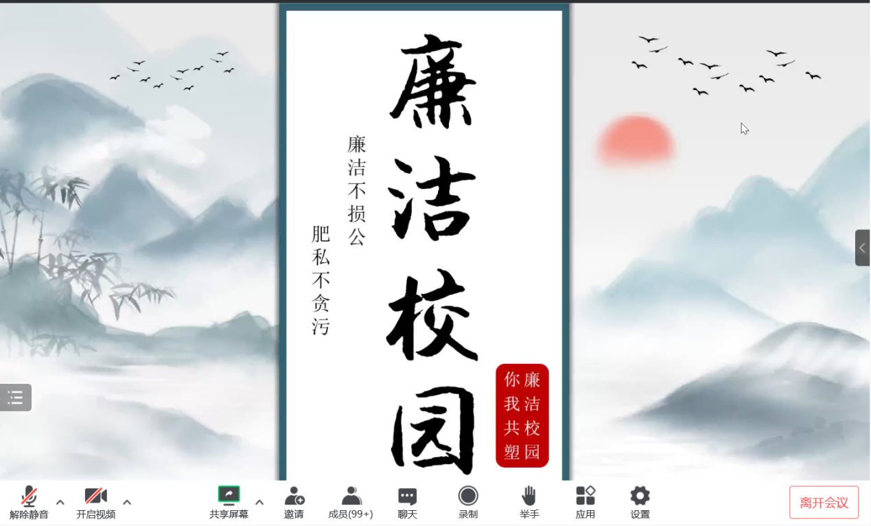举办了“廉洁校园”学生廉洁教育主题活动。活动由辅导员带领学生干部组织,全体团学干部参加。教育活动氛围廉洁及廉政内涵、学校廉洁文化、不廉洁的现象、劝廉小故事、观看廉洁主题视频等五个部分,深入挖掘了中华传统文化中的廉洁思想,深入学习领会了廉洁精神的重要性及如何加强校园廉洁文化建设。通过本次主题教育,促进了学生对廉洁文化的深入了解,引导学生规范自身行为,切实增强学生崇廉尚洁、遵纪守法的意识;有利于学生坚定理想信念,厚植爱国主义情怀,培养廉洁自律意识;有利于加强校园廉洁文化建设,营造廉洁的校园氛围。