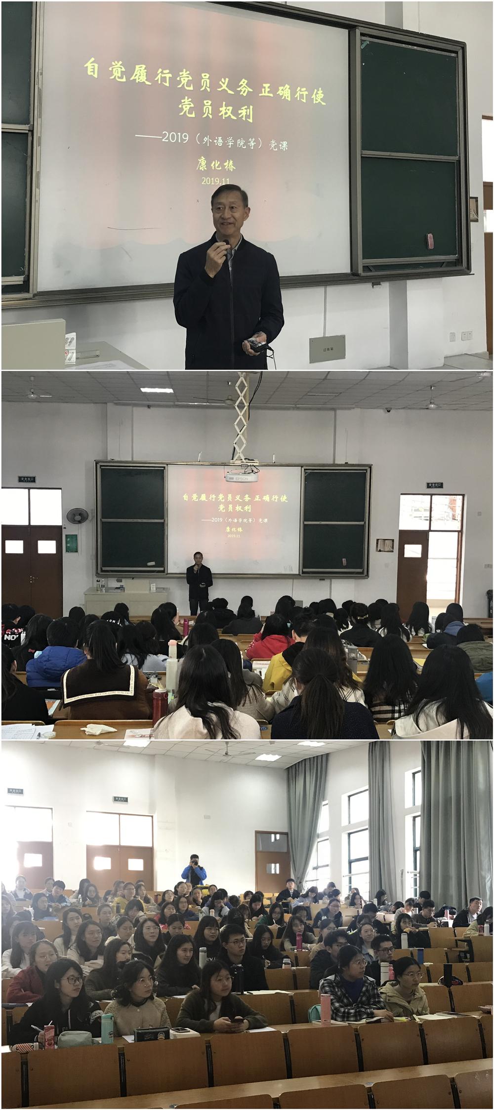 特别邀请的关工委康化椿副教授授课,党课的主题是党员权利和义务教育以及专题组织生活模拟教育。