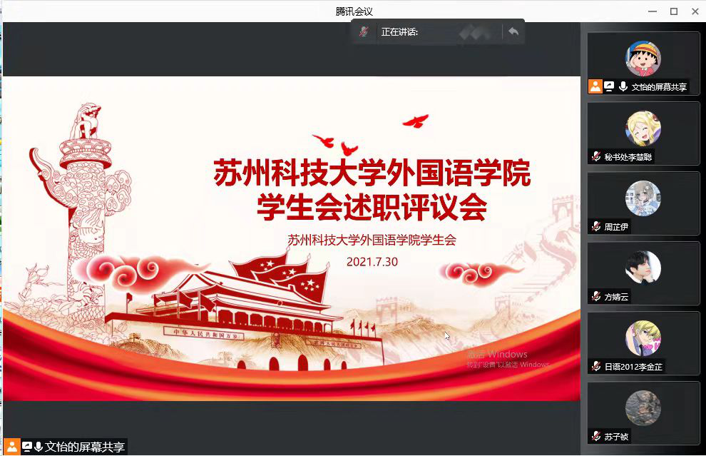 7月30日14:00-16:30,外国语学院2021-2022第一学期学生会述职评议会在腾讯会议线上举行。会议由执行主席文怡主持,学生会主席团、各部门负责轮流进行工作述职。外国语学院团委书记、学生会秘书长陈碧谢及学生代表、学生会成员出席了本次会议。