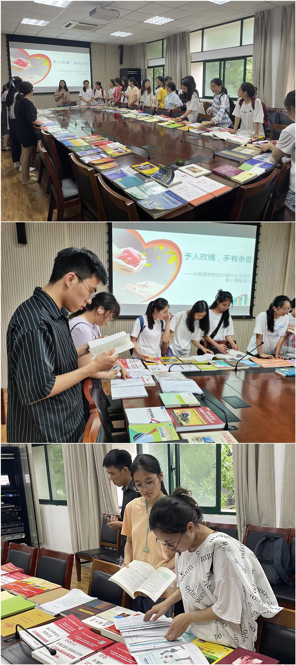 在C2三楼会议室开展了2021届毕业生党员“予人玫瑰,手有余香”爱心捐赠活动。本次活动旨在让毕业生党员们捐出一些有价值的资料,以帮助家庭经济困难的学弟学妹们更好地完成学业。