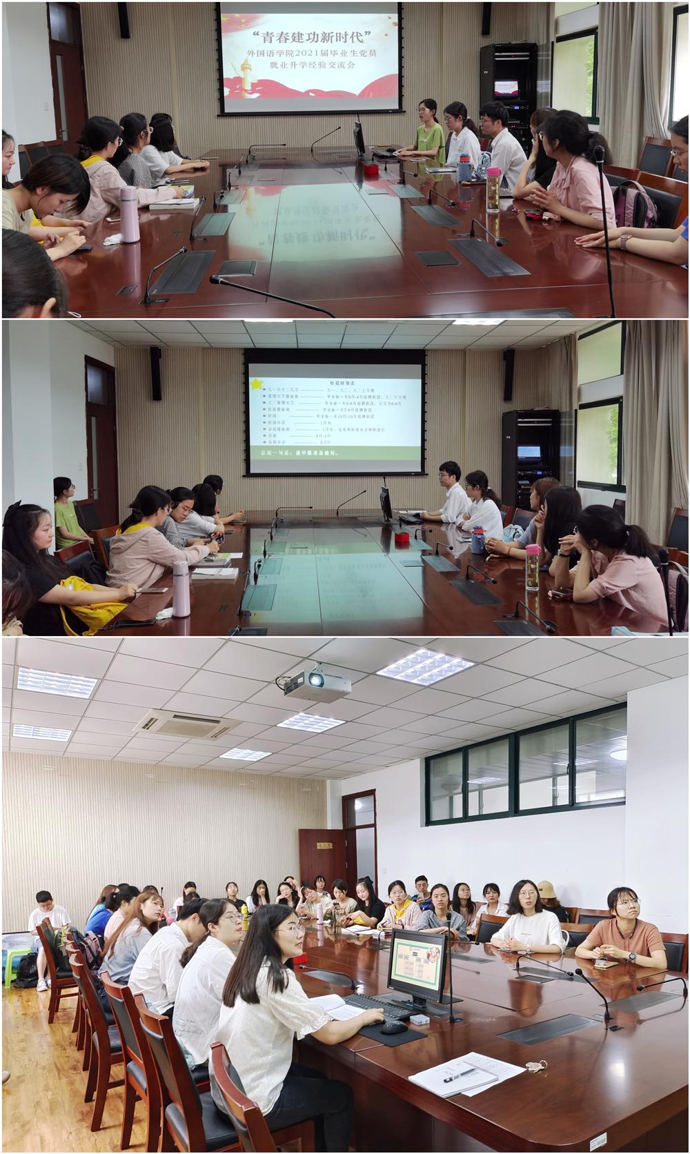 2021届毕业生党员就业升学经验分享会。此次活动邀请了徐妍、黄婷婷、陈晴、曹秋菊、张璐易、陈旭雅与芮天仪等七位优秀党员及学生代表作为主讲嘉宾,他们从就业、考研和出国三个方面向学弟学妹们分享自己的经验,希望能够在就业升学方面为他们提供建议和帮助。