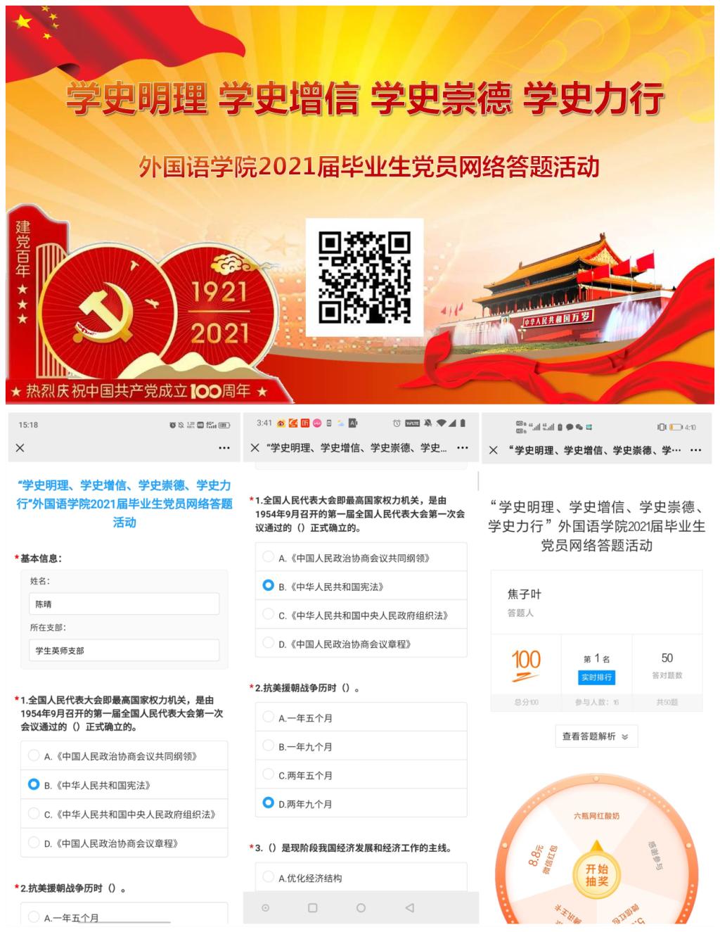 活动2:“学史明理、学史增信、学史崇德、学史力行”网络答题活动