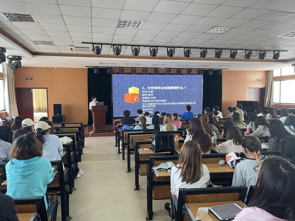 近三年毕业生的就业和考研情况进行了深入分析。接下来,陈老师结合学校就业指导中心的就业计划,为学生们整理了大四学年的就业指导事项,其中包括生源地统计、院校两级的招聘会信息等。最后,在场的学生就目前就业遇到的困惑和问题与陈老师进行了沟通交流。