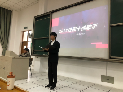 在主持人介绍比赛规则、评分标准和晋级方式后,本次活动正式开始。精心准备了几周的15组选手依次上台进行演唱。评委们认真地倾听了选手们的演唱,并对此进行打分。台下观众对节目反响极为热烈,献上了雷鸣般的掌声。在活动中场,辅导员李心雨老师前来指导观看,并与三位评委展示了动人的歌喉,将现场氛围推向高潮。最后依据评委们的打分,决出了本次比赛的一二三等奖及优胜奖。第一名苏海坤同学进入校级半决赛;第二名孙铭雨同学、第三名李嘉琪同学进入校级晋级赛。