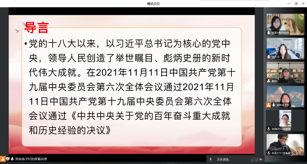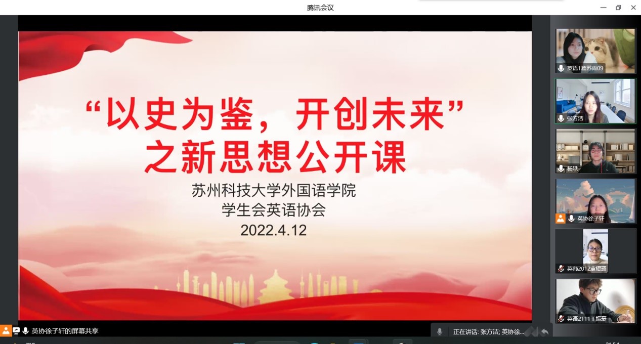 学生会英语协会在腾讯会议举办了线上的“以史为鉴、开创未来”之新思想公开课。