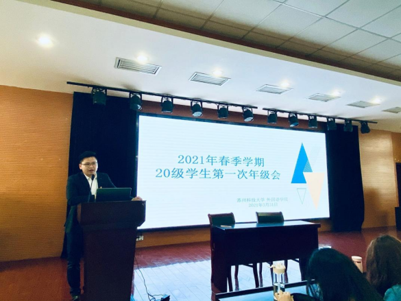 在C2五楼多功能报告厅召开了大一年级2021年春季学期第一次年级大会暨劳动教育推进会。旨在关心学生学习生活、强调安全纪律、实施思想引领、倡导文明风尚、初探职业生涯、推进劳动教育。本次会议由辅导员谭亲平主持,雷速体育