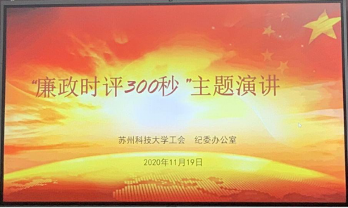 为深入学习贯彻习近平新时代中国特色社会主义思想和党的十九大精神,弘扬社会主义核心价值观,推进学校廉政文化建设和廉洁教育工作,2020年11月19日13:30,苏州科技大学工会联合纪委办公室在行政楼五楼智库会议室举办了以“扬清风、颂廉洁、树正气 ”为主题的“廉政时评300秒”演讲比赛。据统计,学校行政部门和各学院共有21个参赛项目。经评审,雷速体育