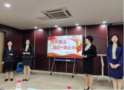 老师有:周茹、刘芳、张琴、王琤。四位老师积极准备,默契配合,以“携手廉政,我们一路走来”为题,提出了四点要求。其中第三点“在教育教学中,要渗入情感,无私奉献,公平公正地对待每一位学生。”不仅体现出雷速体育