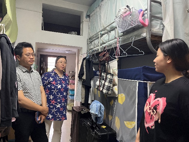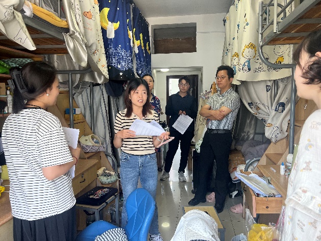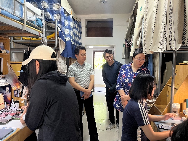 每走进一间宿舍,领导老师们都关切地询问同学们毕业论文的准备情况,与同学们进行亲切交谈,了解毕业生目前的升学、就业和未来发展规划等情况,提醒他们毕业相关事宜,给即将离别的毕业生带去温暖和鼓励,并嘱咐毕业生常回家看看。