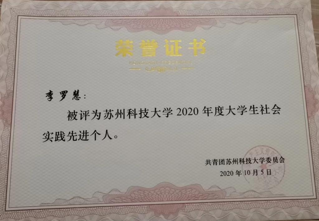 李罗慧,中共党员,2019级英语专业。曾获校综合特等奖学金、校综合一等奖学金、校综合二等奖学金、中建四局六奖学金、校三好学生标兵、校社会实践先进个人、校优秀团员、校优秀志愿者、国家励志奖学金、首届CATTI杯全国翻译大赛一等奖、首届CATTI杯全国口语大赛三等奖、第六届ISCAT江苏省笔译大赛二等奖、第八届ISCAT江苏省笔译大赛三等奖、首届沪江杯科技翻译大赛优秀奖、爱心辅导老师等奖项或荣誉。主持并参与省级大学生创新创业训练计划项目2项,发表省级期刊论文2篇。2023年被录取为扬州大学英语语言文学专业研究生。