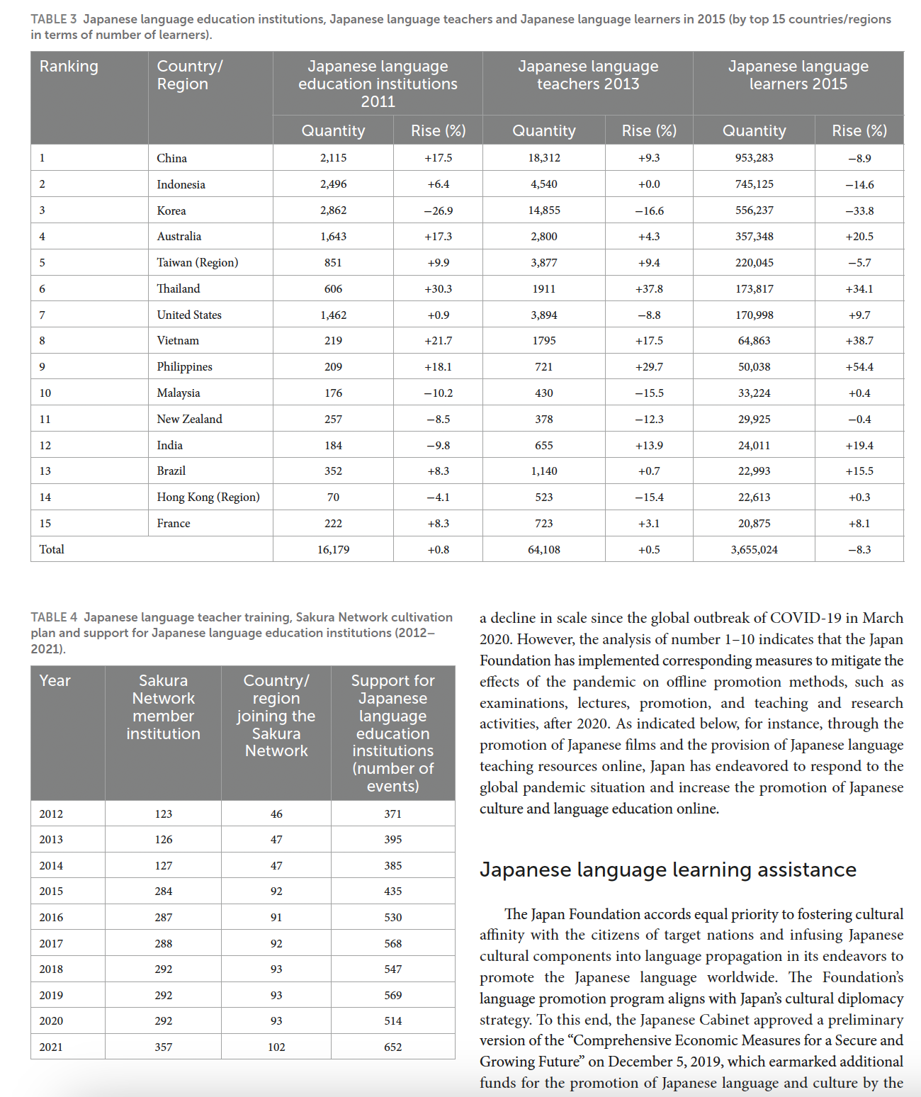 该论文以日本软实力建设为案例,基于语言教育规划和语言声誉规划的理论,从日语教师派遣计划、“樱花网络”培养计划、日语教育机构援助情况、JF日语教育标准推广、e-learning等网络教学平台建设等15个维度,对过去10年间的政策报告和数据展开挖掘,重新评估了日本语言与文化推广的规划与效果,构建了“政府—地方—民间团体”三位一体的、语言政策与文化推广双重路径融合的软实力结构模型。研究发现,将包括政策制定者、教育者和学习者在内的各种利益相关者纳入软实力动态的全面评估中,可以有助于理解软实力的内在本质和多重维度的达成路径。该论文阐明了语言规划的两种方法如何促进一国软实力的提升,增进了语言规划学与政治传播学的理论对话,厘清了软实力的构建逻辑,对于新形势下我国国际影响力和软实力的提升有一定的参考价值。
