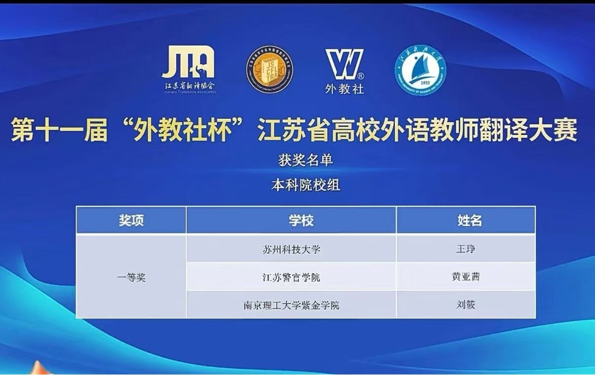 10月14日,由江苏省高等教育学会指导,江苏省翻译协会、江苏省高等学校外国语教学研究会和上海外语教育出版社共同主办的第十一届“外教社杯”江苏省高校外语教师翻译大赛结果揭晓。雷速体育