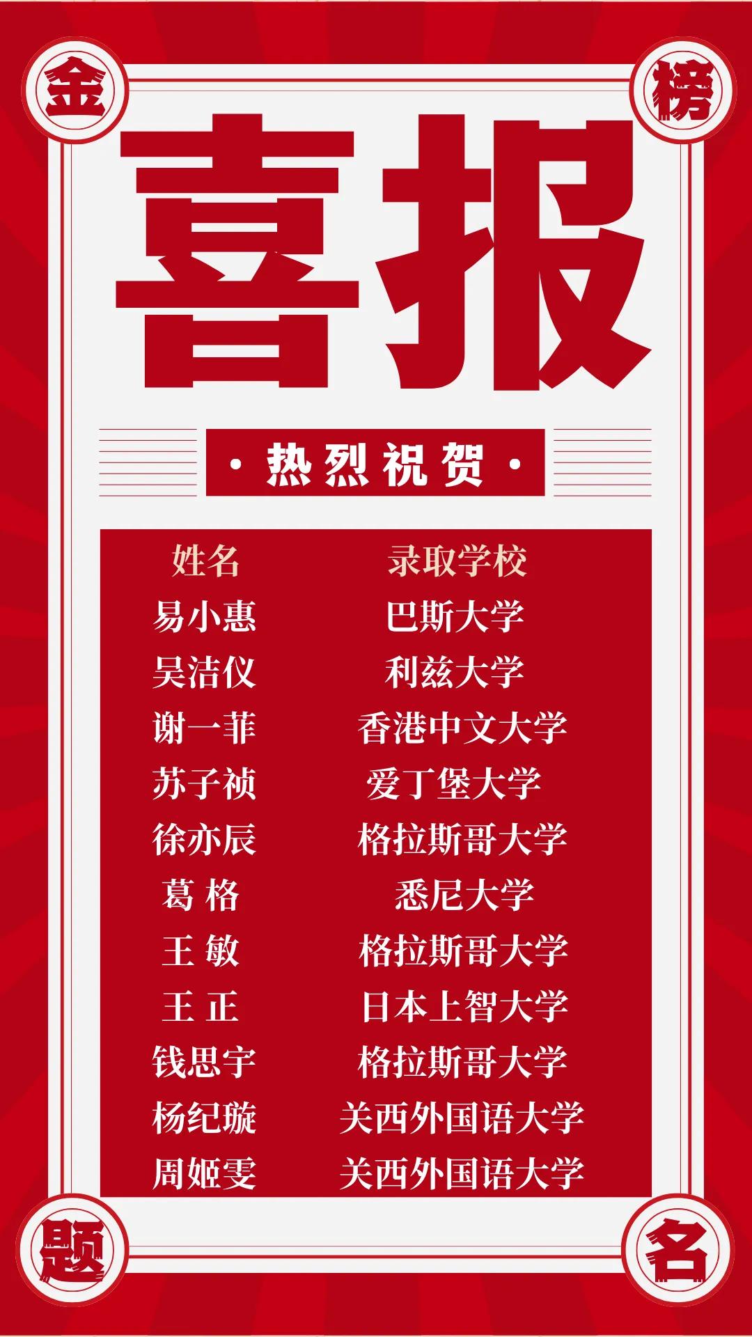 以下是雷速体育 2024年升学喜报。(排名不分先后)